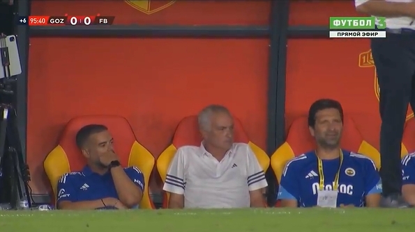 08月17日讯 土超第2轮,十人费内巴切客场0-0十人哥兹塔比,整场比赛出现3红12黄,塔利斯卡第94分钟失点。塔利斯卡失点后,镜头给到费内巴切主帅穆里尼奥。穆帅坐在替补席,神情凝重,看着场上若有所思。